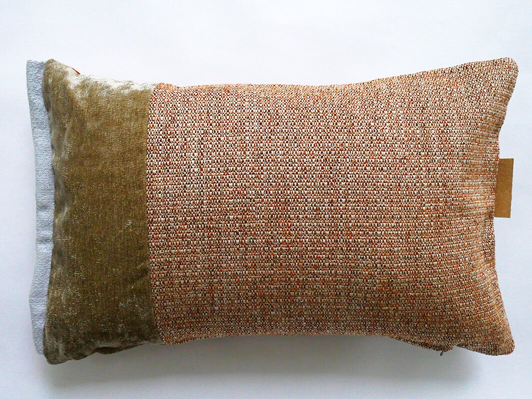 Kussen 0735 groen/cognac/bruin, 2 verschillende kanten, 40x60cm