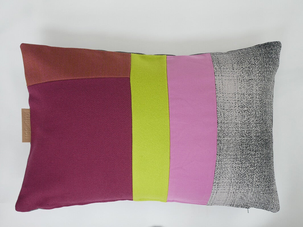 Kussen 0755 roze/groen/zwartwit, 2 verschillende kanten, 40x60cm